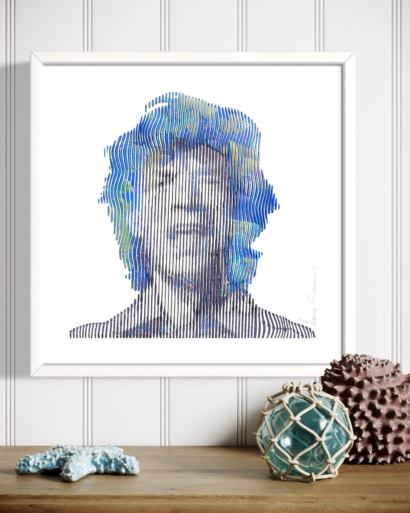 Virginie Schroeder's work is a mix of pop, street, and kinetic art that pays homage to contemporary icons. Her paints are applied with a knife, brush, and syringe that are delicately blended to bring out colorful details full of depth. Her work is conceived line by line; painted, and sculpted with patience and a lot of passion. This series is inspired by the kinetic art movement which allows us to experience the work from several angles.