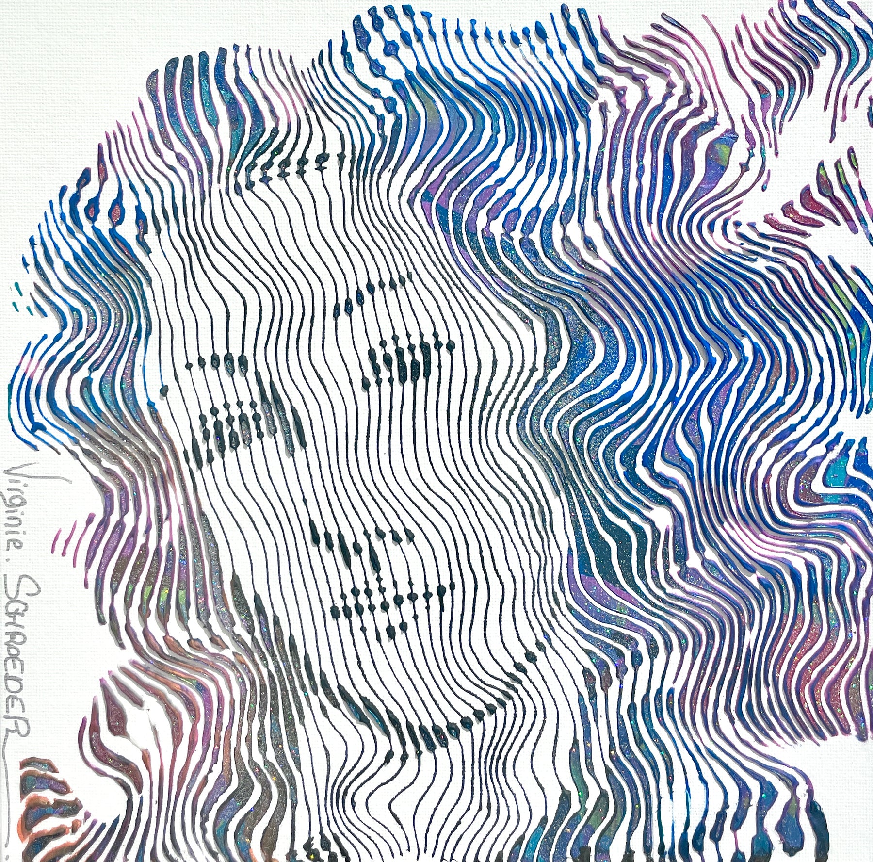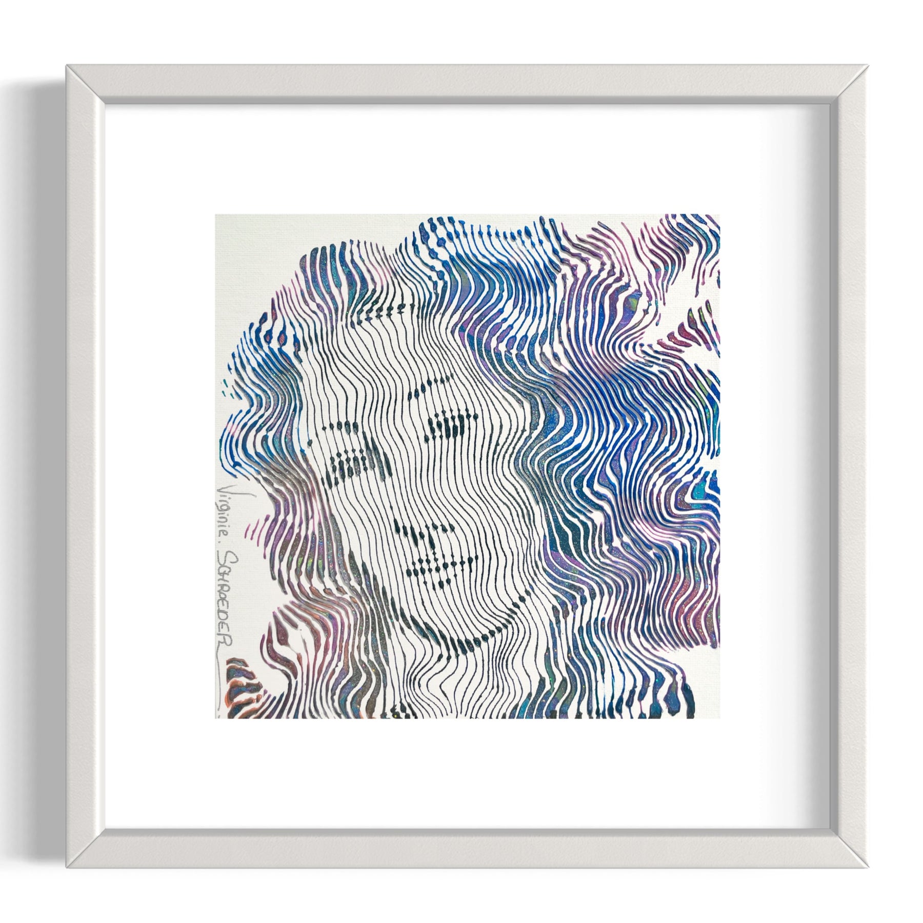 Virginie Schroeder's work is a mix of pop, street, and kinetic art that pays homage to contemporary icons. Her paints are applied with a knife, brush, and syringe that are delicately blended to bring out colorful details full of depth. Her work is conceived line by line; painted, and sculpted with patience and a lot of passion. This series is inspired by the kinetic art movement which allows us to experience the work from several angles.