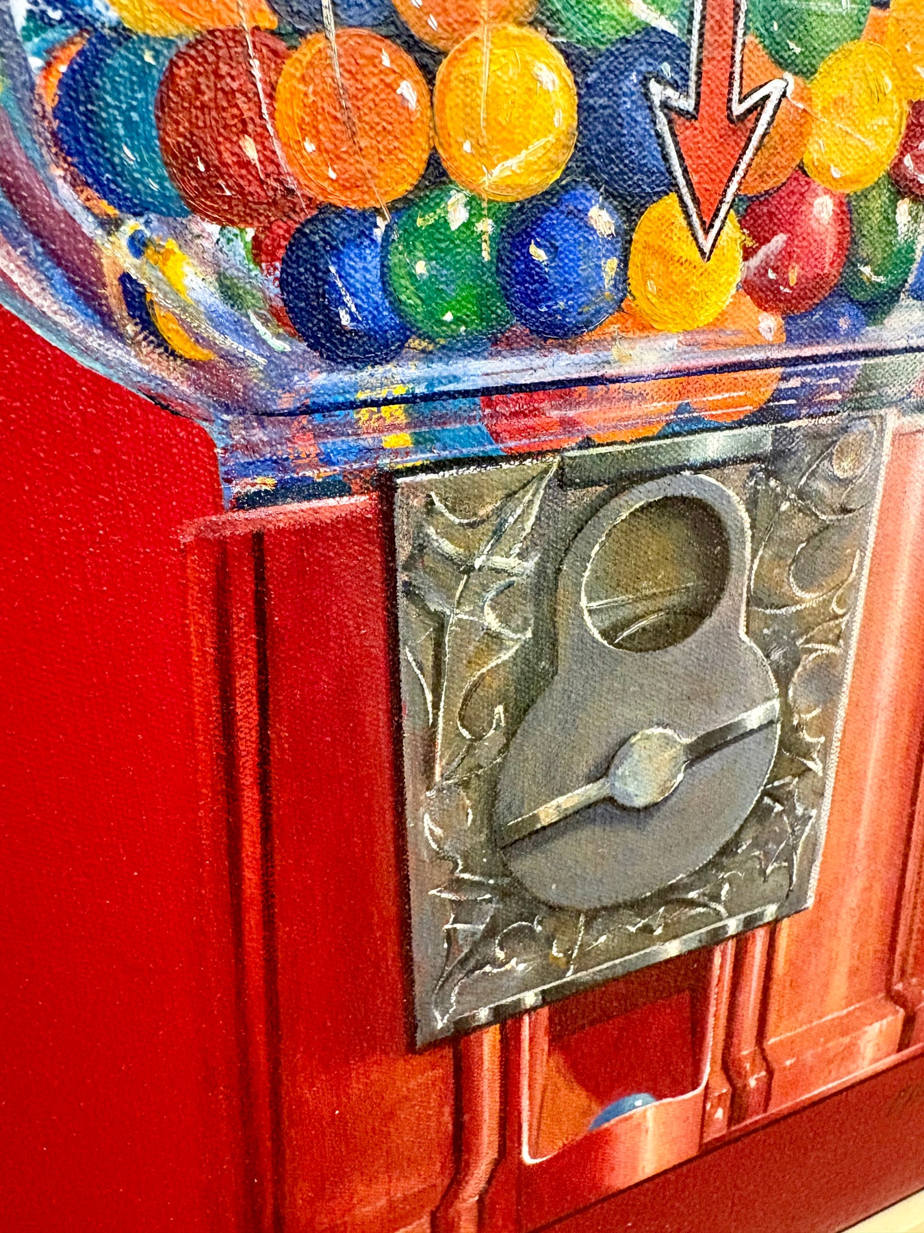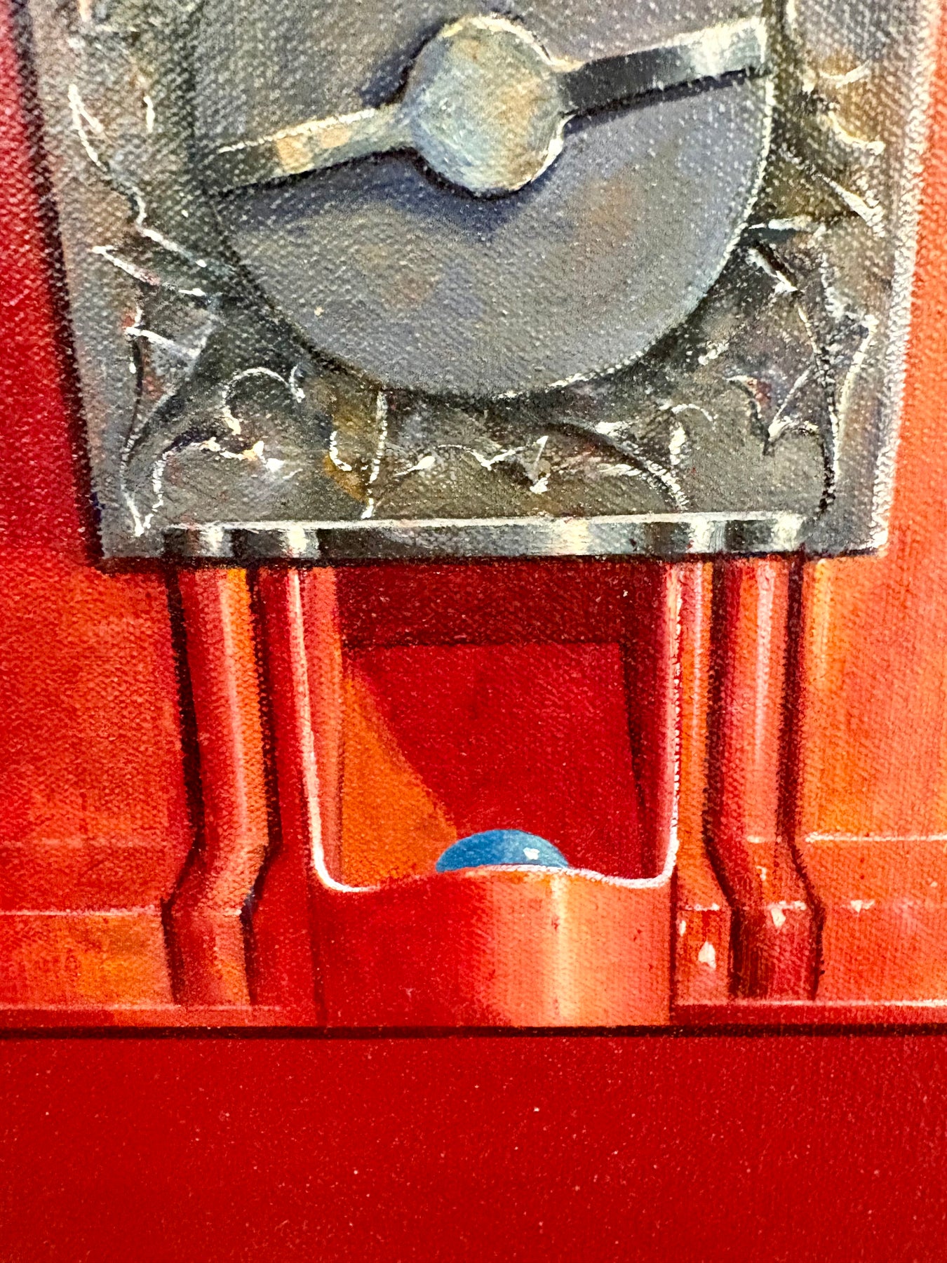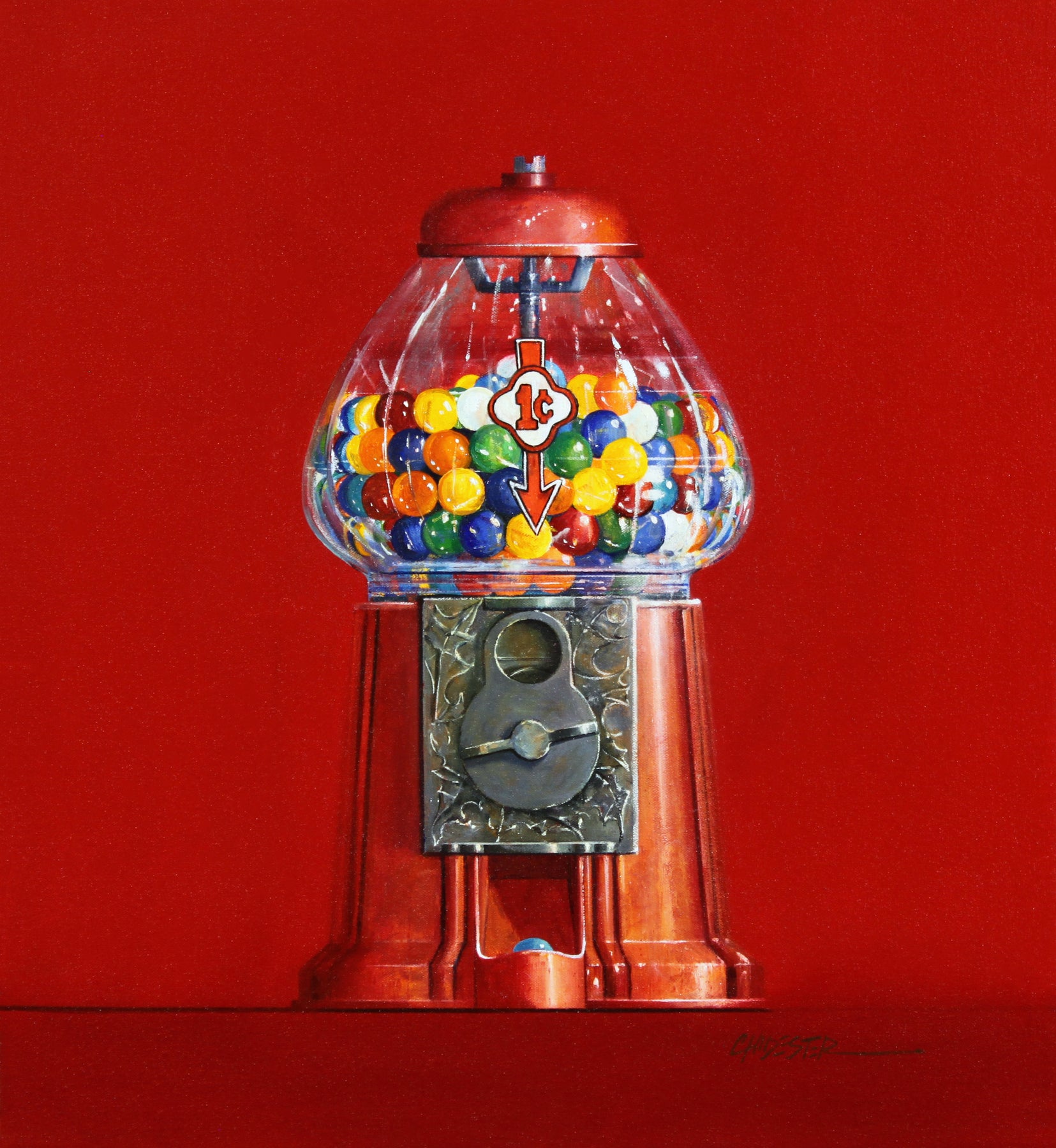 In her gorgeous photo-realistic still-lifes, American oil painter Wendy Chidester pays homage to lost relics of the past. Artifacts like vintage cameras and projectors, 40’s trunk luggage, bubblegum machines, childrens’ pedal cars and tricycles, and old telephones and typewriters are represented nostalgically in her work. She frames these objects as icons, memorializing the color and ingenuity of the past.