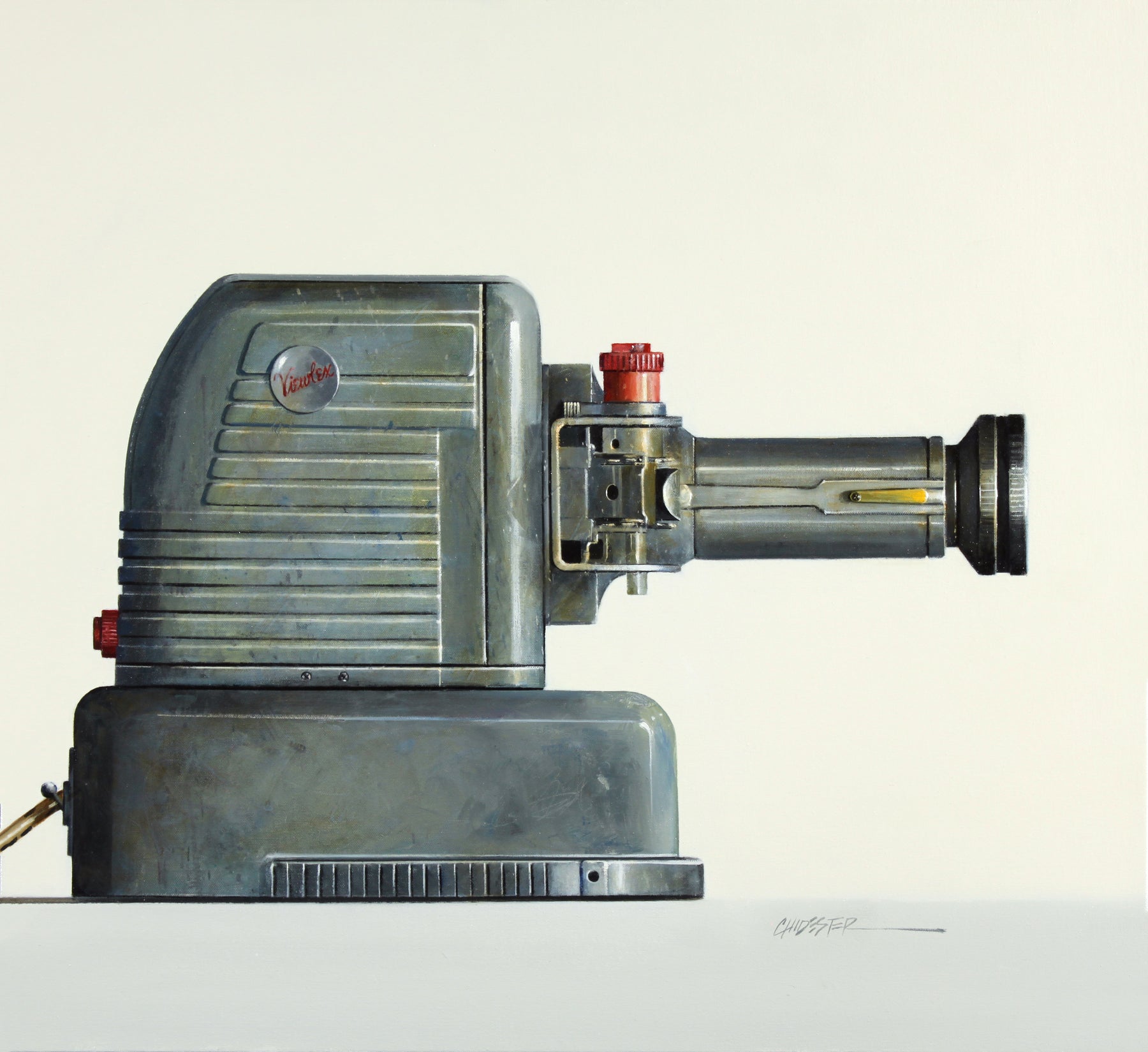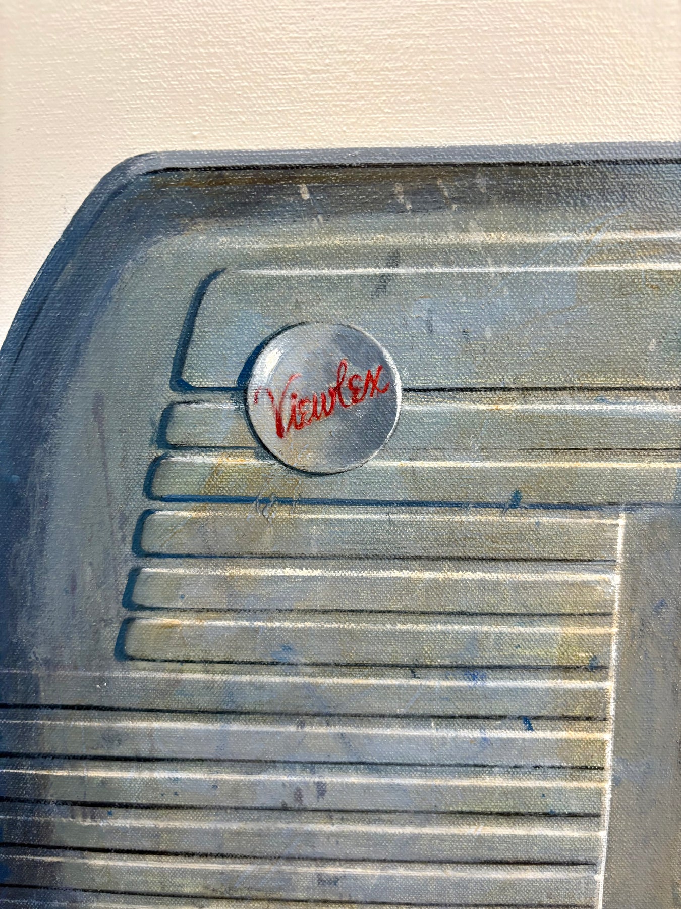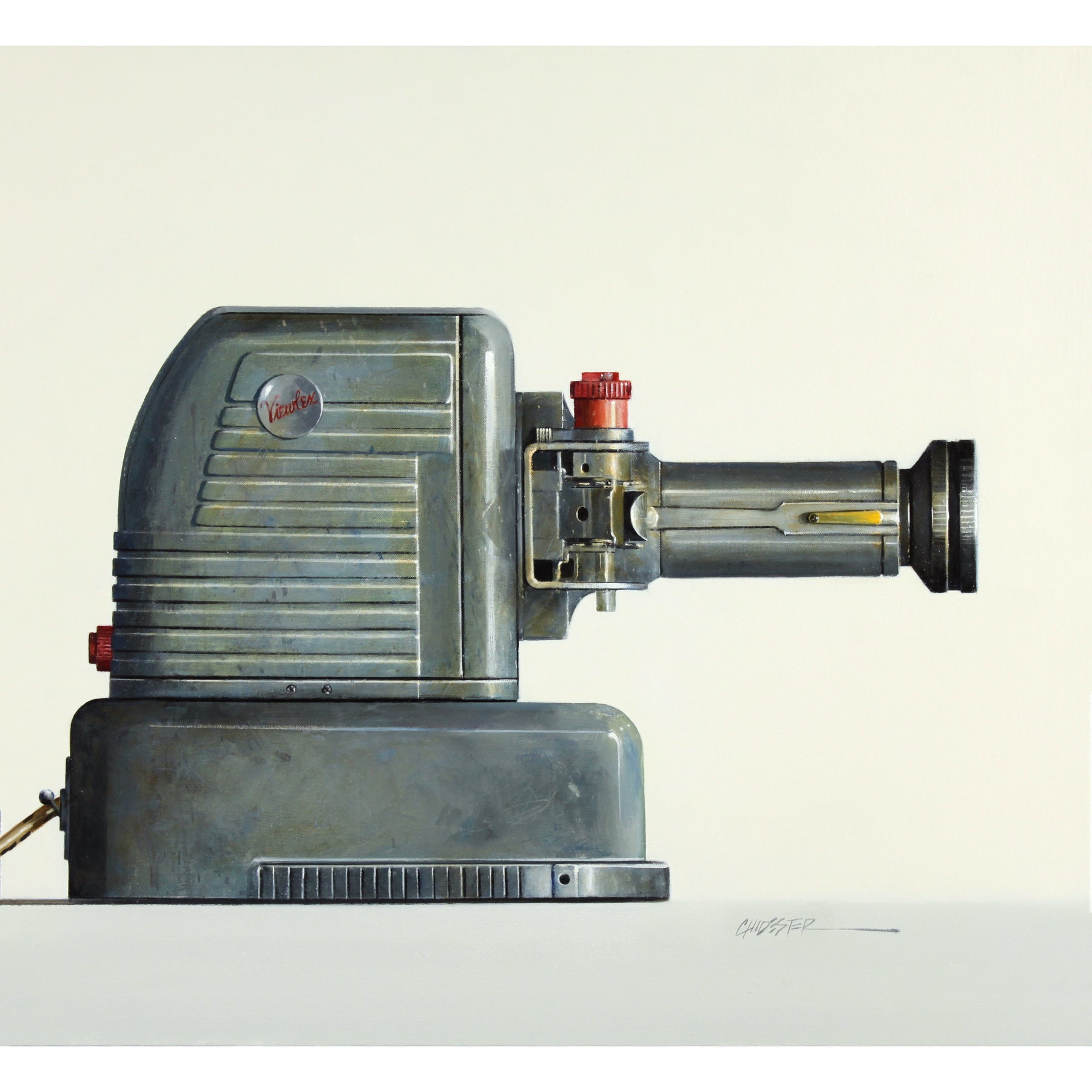 33"x24" oil on canvas painting of a vintage Viewlex image projector.