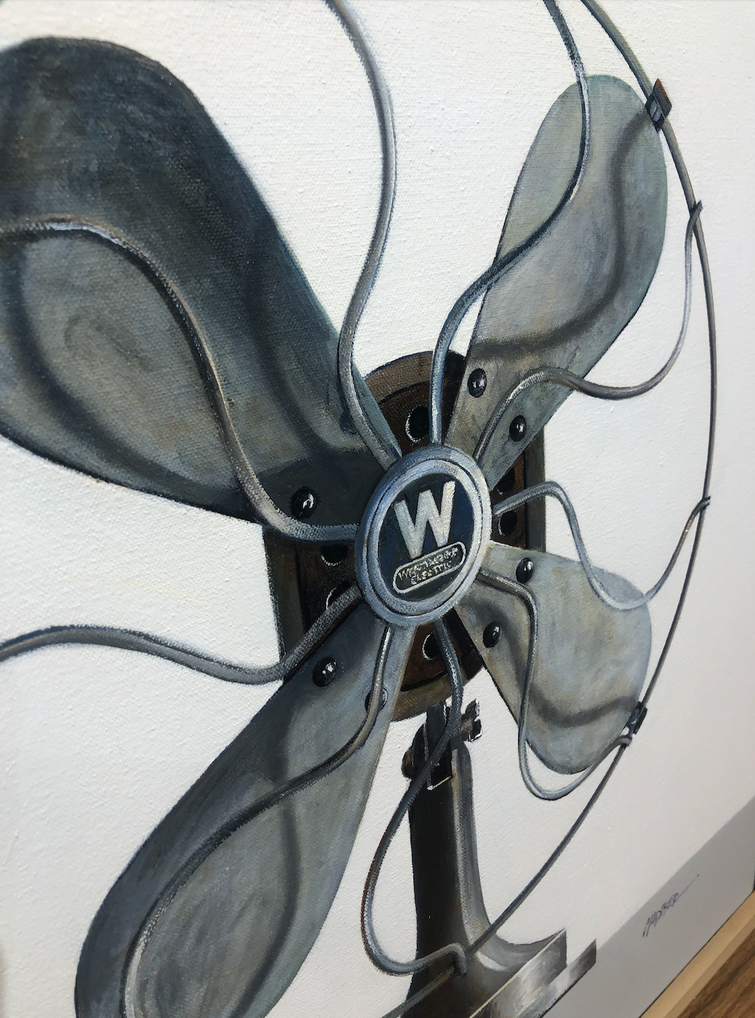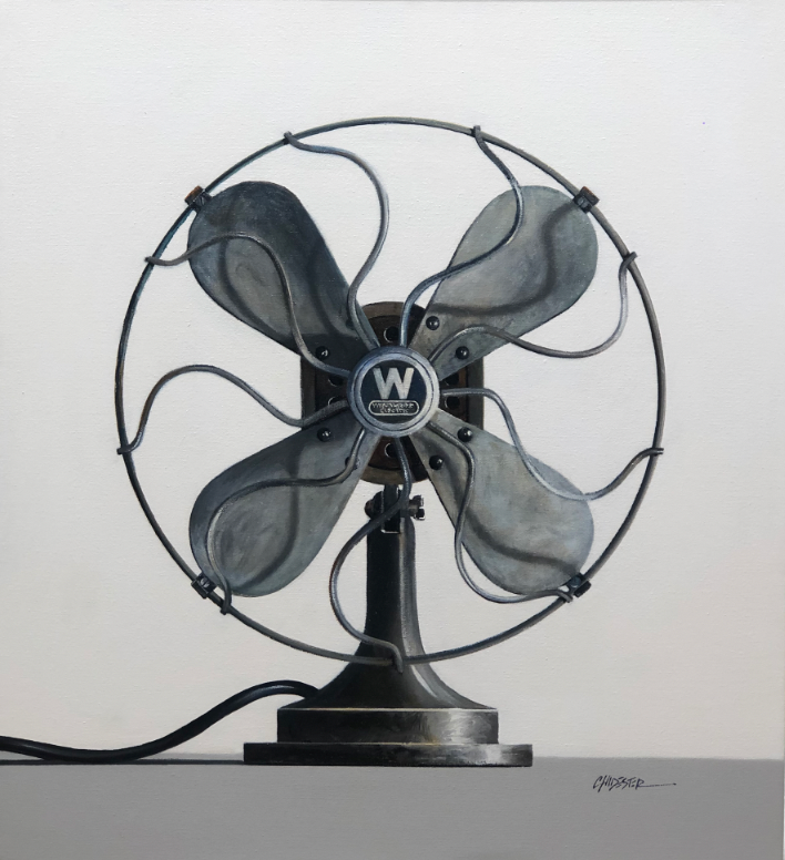 In her gorgeous photo-realistic still-lifes, American oil painter Wendy Chidester pays homage to lost relics of the past. Artifacts like vintage cameras and projectors, 40’s trunk luggage, bubblegum machines, childrens’ pedal cars and tricycles, and old telephones and typewriters are represented nostalgically in her work. She frames these objects as icons, memorializing the color and ingenuity of the past.