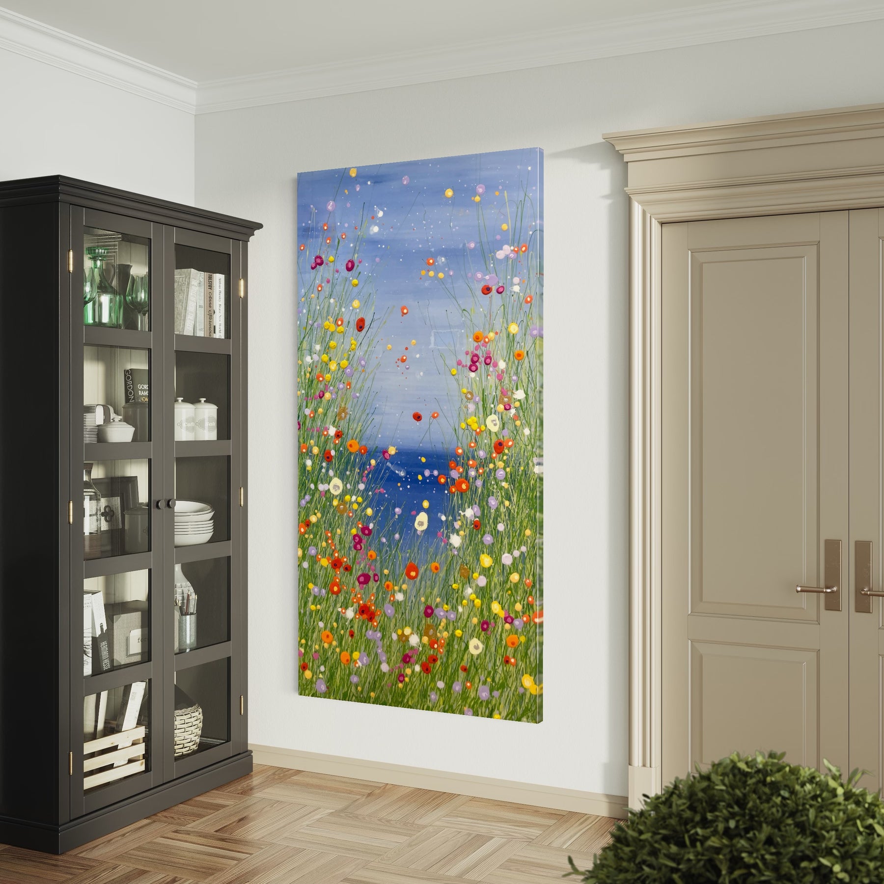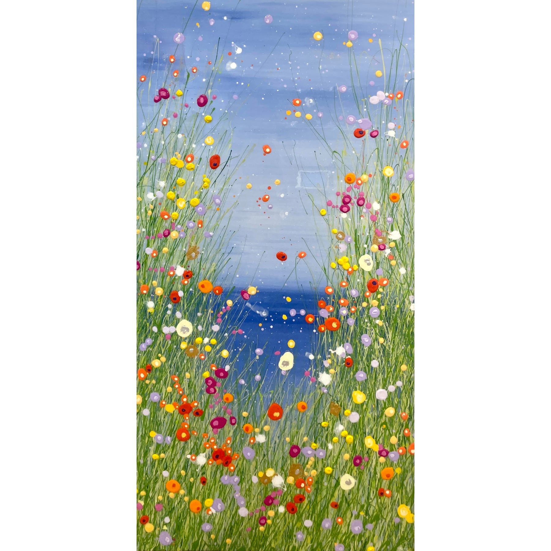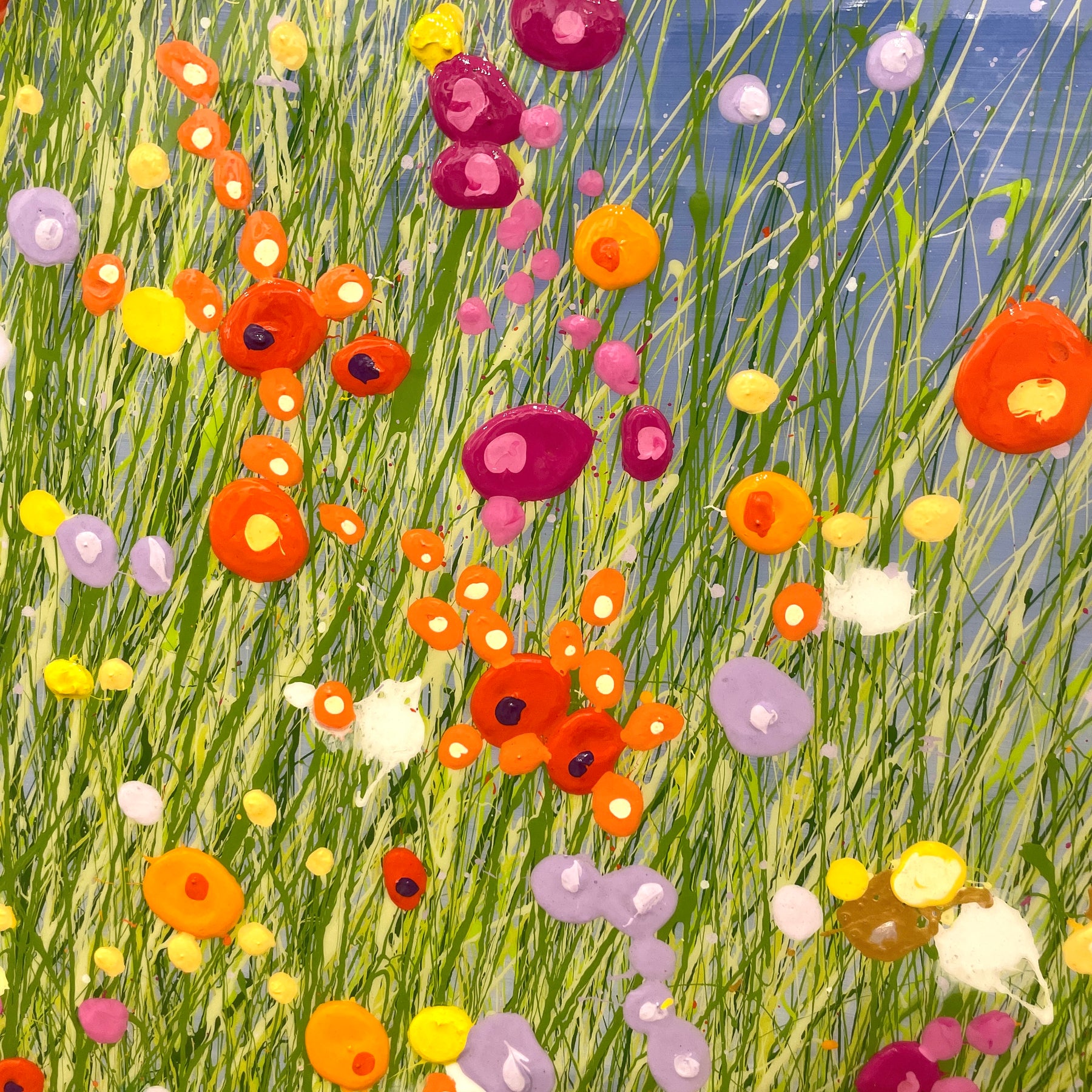 Hudson Valley-born artist, Eric Heitmann, creates beautiful, colorful abstract floral and landscape paintings that rejoice in the colors and textures of nature: swaying water grasses, glistening wildflowers, gliding swans, even the resident perching bald eagle. His landscape style painting verges on the abstract, and is constructed of many layers of acrylic paint to create dimensional landscapes and bright gardens.