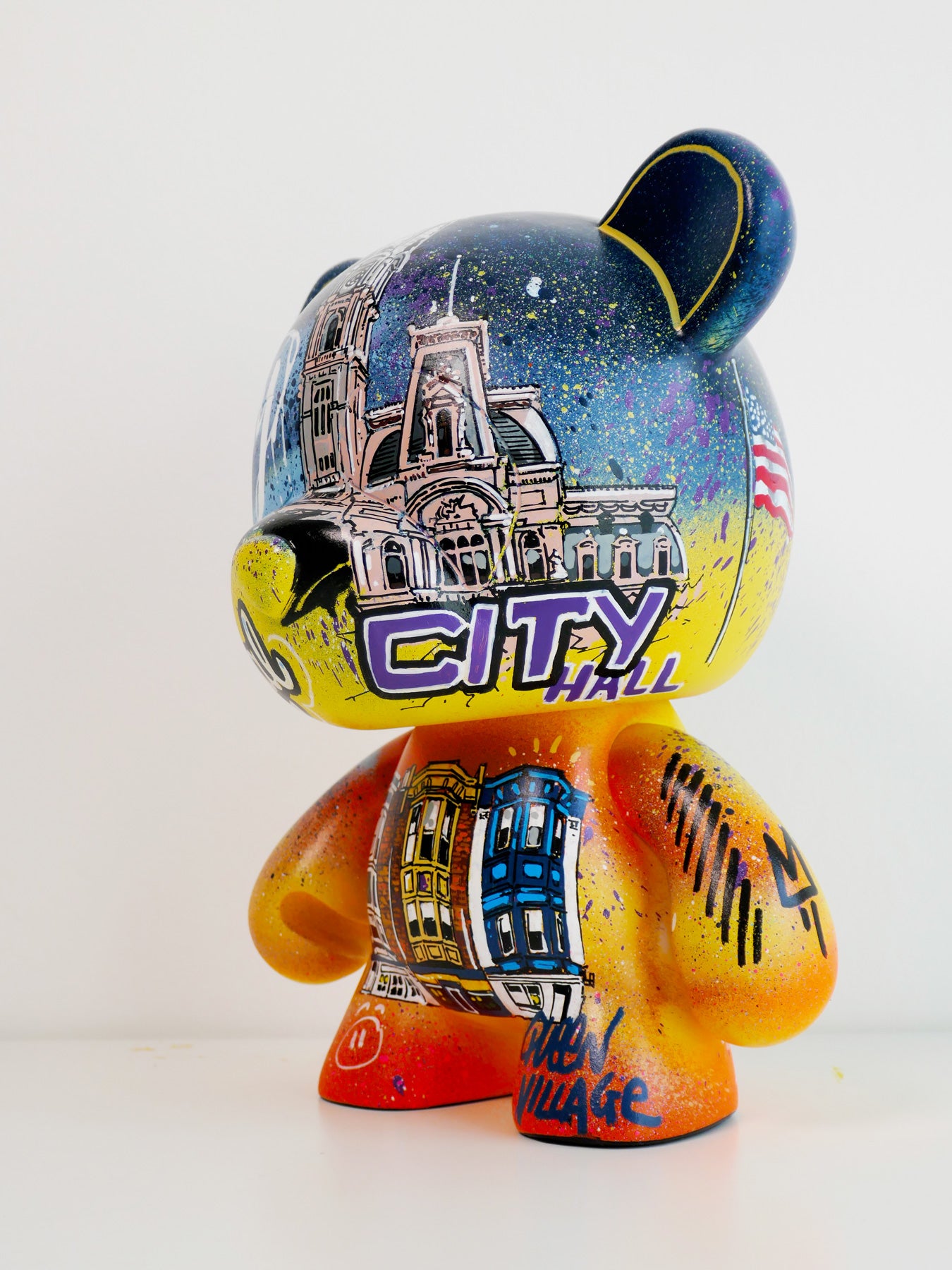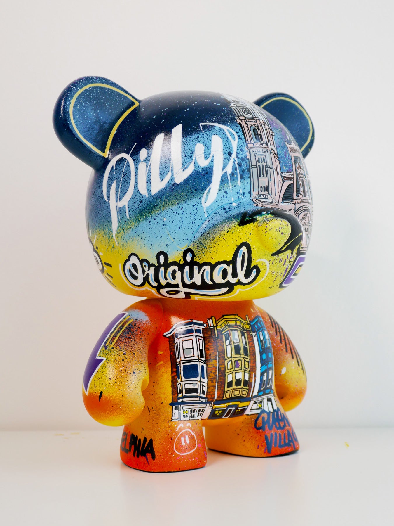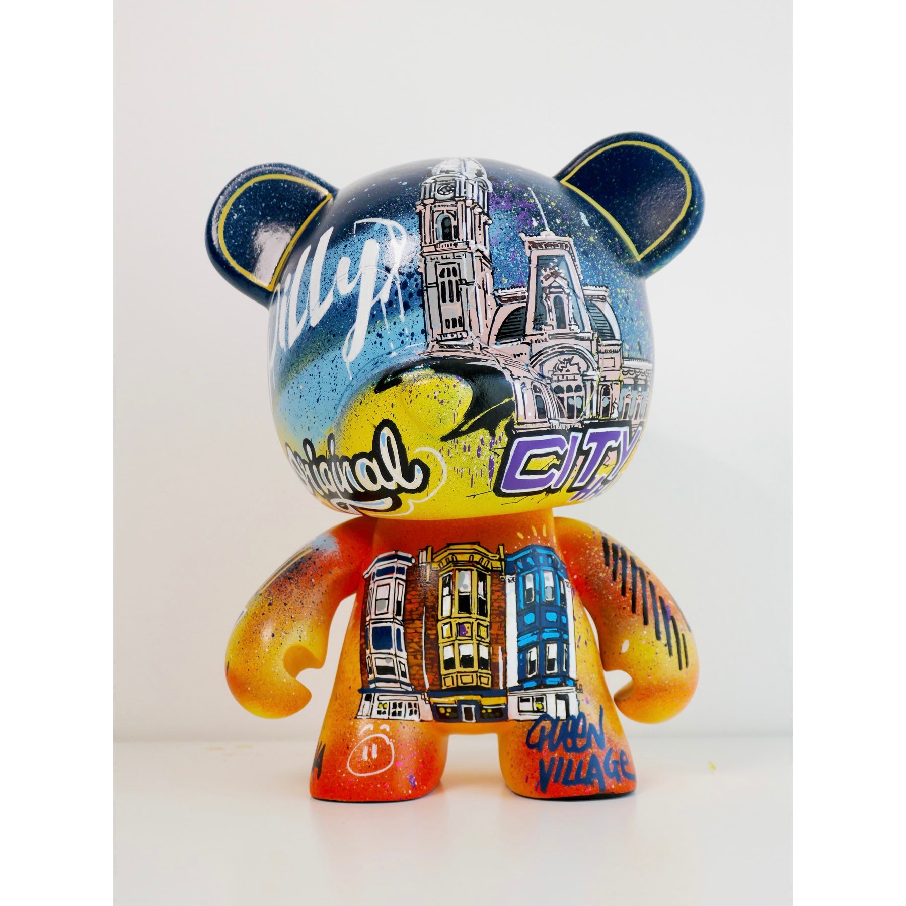 philadelphia graphic illustrations on bear sculpture buildings skyscrapers sports graffiti tags spray paint