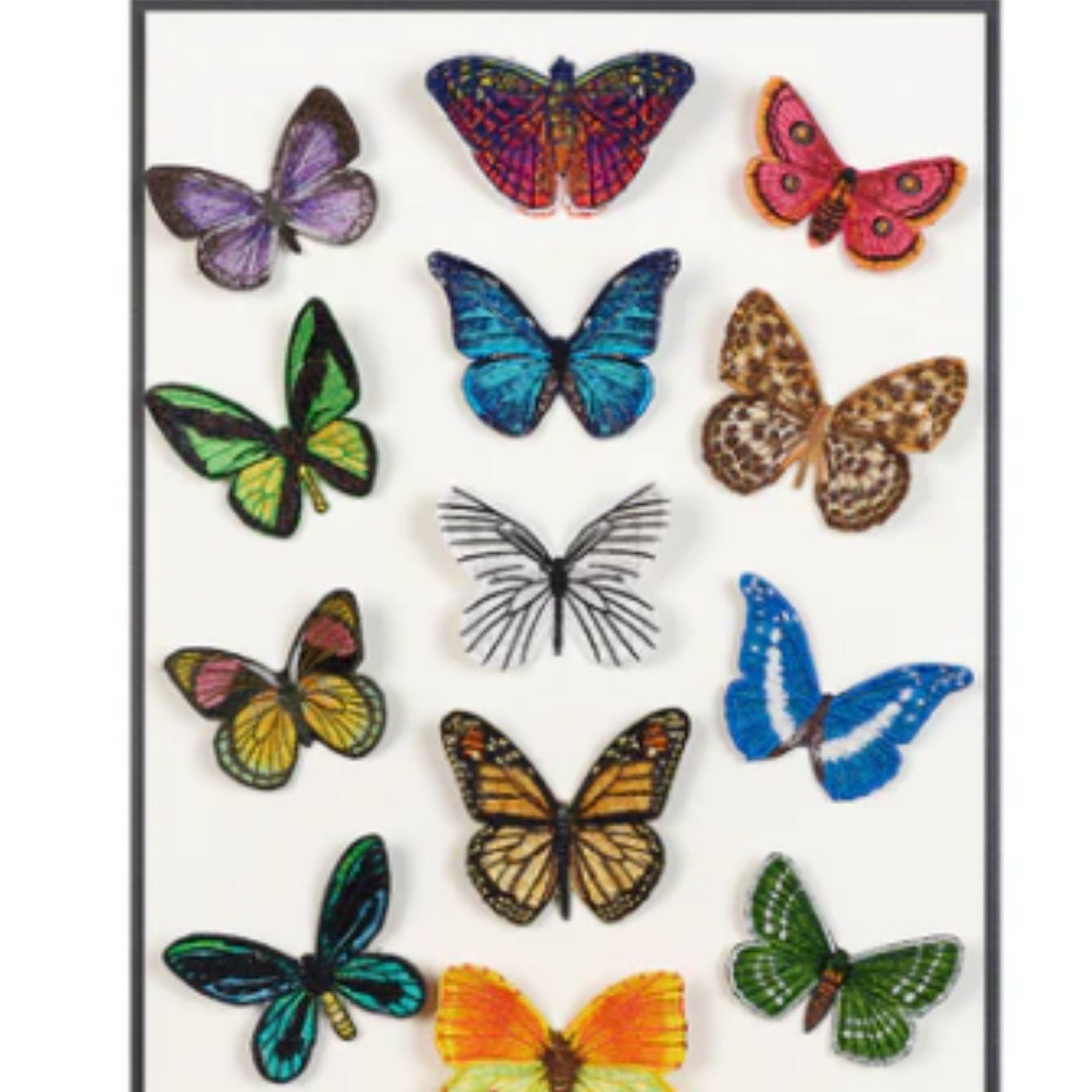Stephen Wilson expertly crafts extraordinary and timeless designs using sustainable materials. Each art piece embarks on a journey, starting with an up-cycled luxury bag, box, silk scarf, or album. Wilson meticulously creates a bespoke embroidery design, delicately intertwining every stitch by hand. Once the design, colors, and elements are meticulously selected, the artistic process advances to the assembling stage. The boxes and bags undergo a mesmerizing transformation, metamorphosing into captivating canvases for Wilson's creations. The embroidery is seamlessly integrated into the chosen medium, unveiling a captivating texture that breathes life into the artwork. Appliqués, patches, and butterflies are individually stitched out, meticulously crafted, and delicately placed on each piece, culminating in a truly distinctive and unparalleled masterpiece. Finally, each artwork is beautifully presented, encased in an acrylic frame, ready to enchant all who behold it.