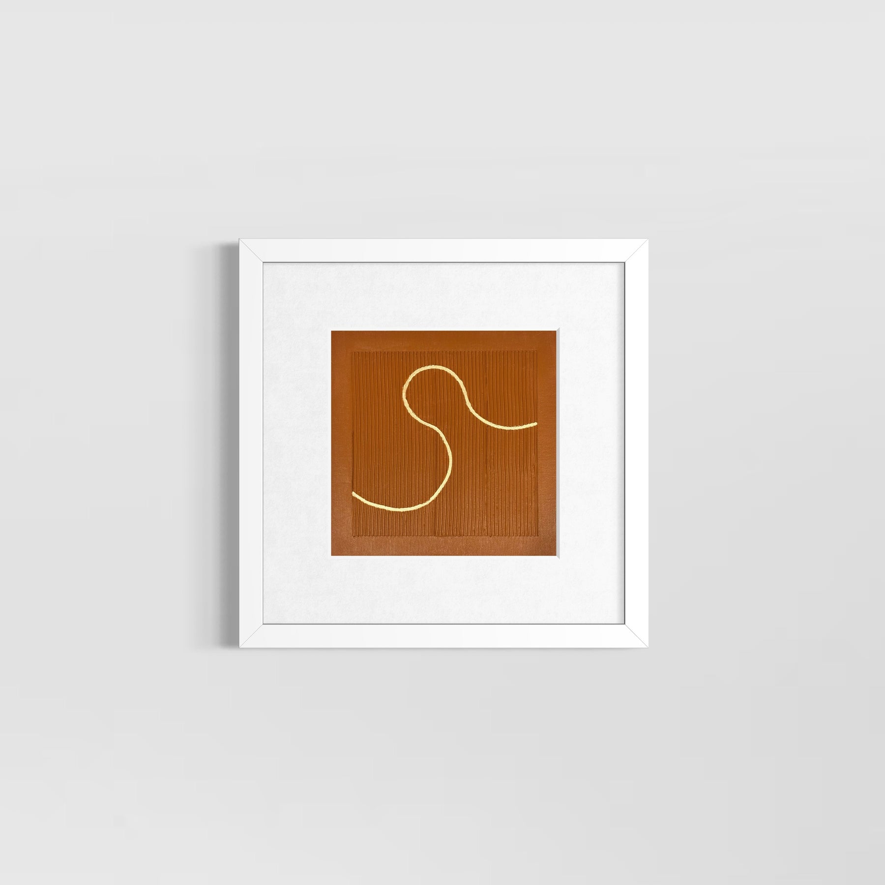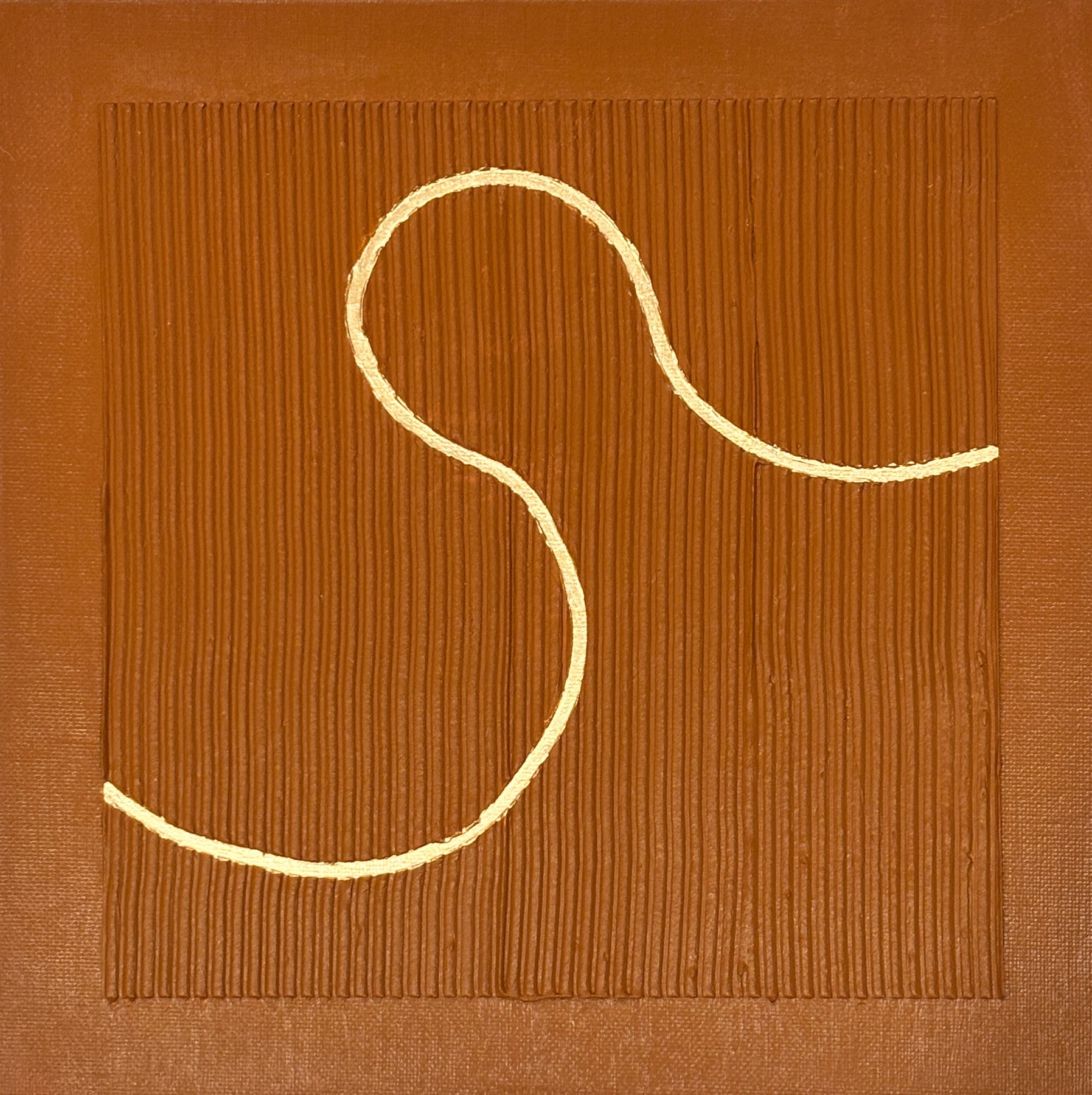 Jerilee, a Philadelphia-based artist working under the name ‘Lee in Cerulean’, creates striking minimalist pieces. For Lee, simple curves, asymmetry, and overlapping forms reflect the beautiful world around us—and find, within our surroundings, the continuity, serendipity, and at times mundane nature of everyday life. Deriving from the Japanese Wabi-Sabi philosophy’s embrace of imperfection, highly textural pieces show Lee’s freeform strokes, using a blend of joint compound, acrylic paint, and a myriad of other media. Under this philosophical orientation, ridges and built-up materials are a reminder that we continue to evolve, just as nature does.