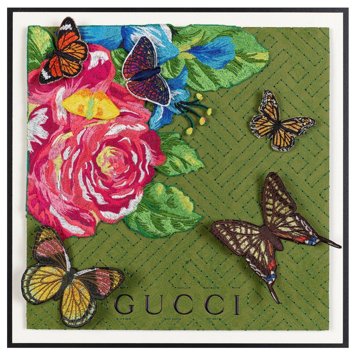 Stephen Wilson expertly crafts extraordinary and timeless designs using sustainable materials. Each art piece embarks on a journey, starting with an up-cycled luxury bag, box, silk scarf, or album. Wilson meticulously creates a bespoke embroidery design, delicately intertwining every stitch by hand. Once the design, colors, and elements are meticulously selected, the artistic process advances to the assembling stage. The boxes and bags undergo a mesmerizing transformation, metamorphosing into captivating canvases for Wilson's creations. The embroidery is seamlessly integrated into the chosen medium, unveiling a captivating texture that breathes life into the artwork. Appliqués, patches, and butterflies are individually stitched out, meticulously crafted, and delicately placed on each piece, culminating in a truly distinctive and unparalleled masterpiece. Finally, each artwork is beautifully presented, encased in an acrylic frame, ready to enchant all who behold it.
