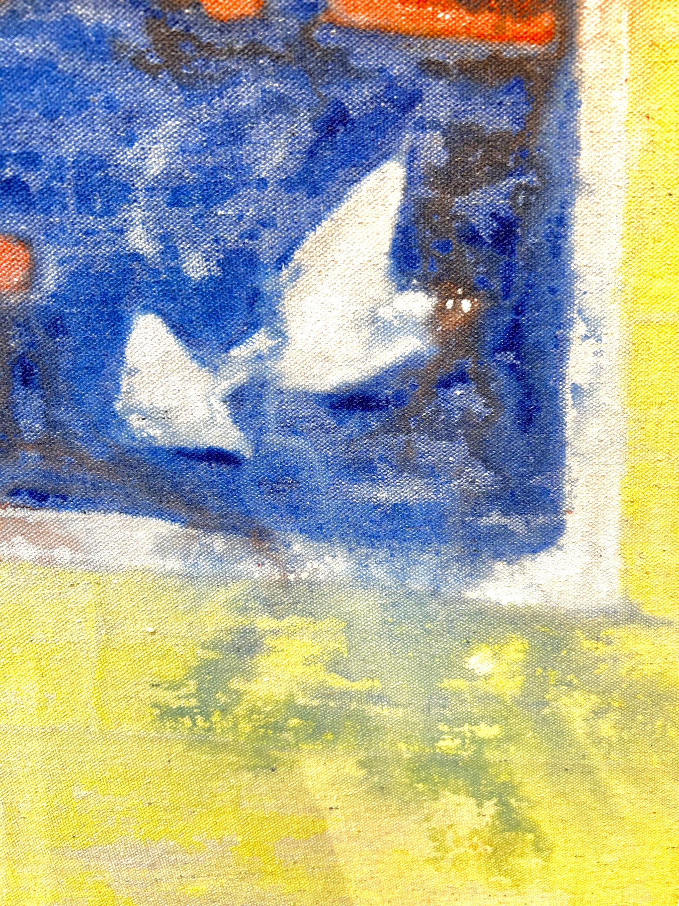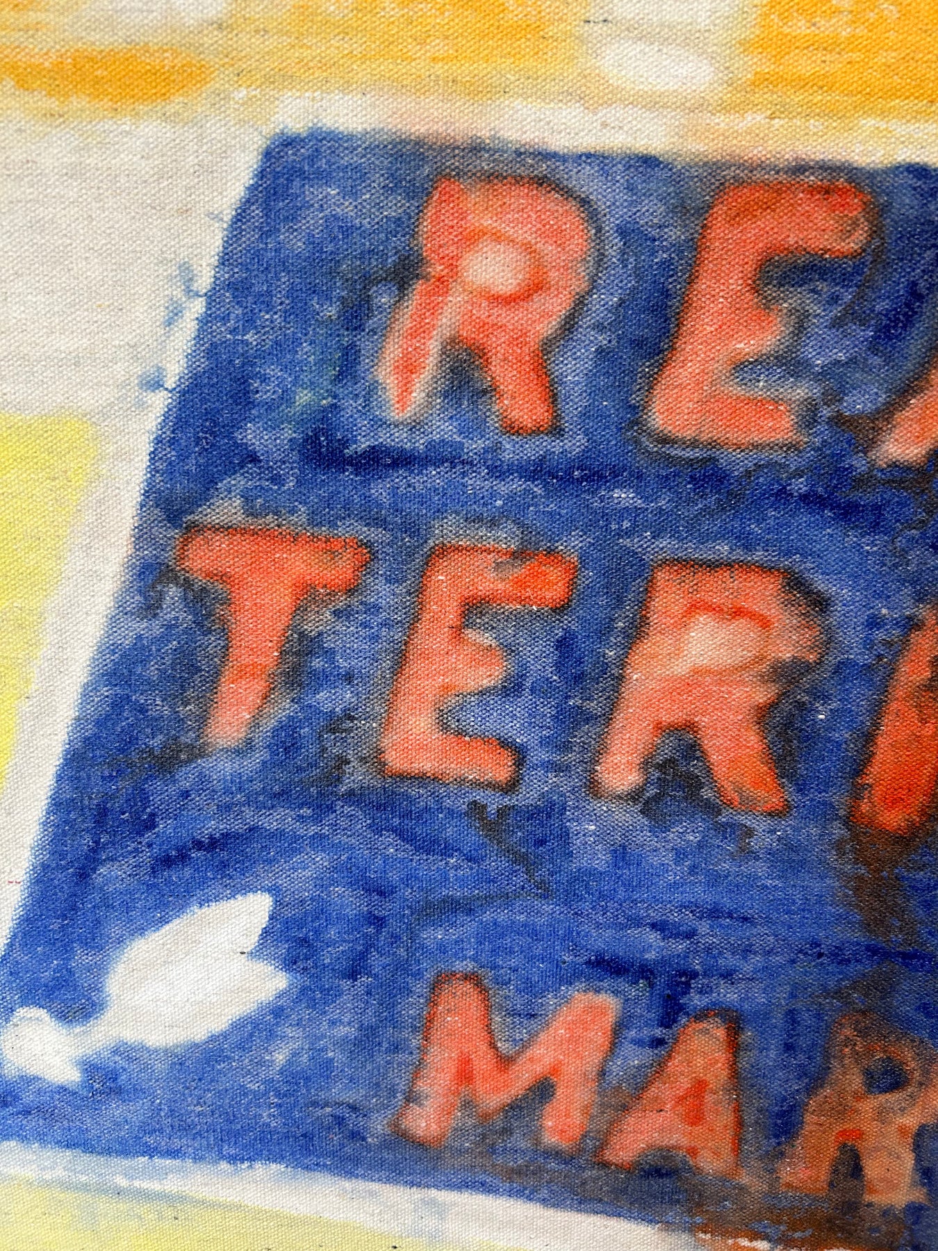 - Naturally pigmented watercolors, painted on recycled sailcloth with ocean water.